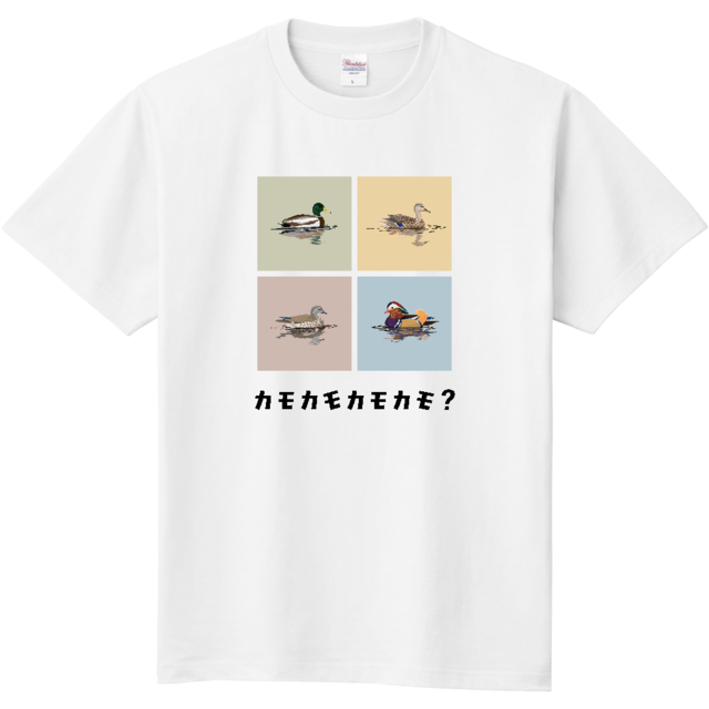 野鳥Tシャツ:カモカモカモカモ?(ホワイト)